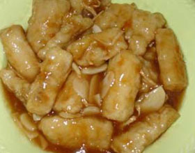 果汁鱼块:'1.把草鱼去骨留鱼肉;2.将鱼肉切块,并用盐擦过,再落鸡蛋、湿淀粉拌匀拍上干生粉,用油炸至金黄色;3.打上果汁芡,加尾油推匀便成。...    详细介绍