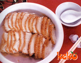 6.将猪肉扣入汤碗内;