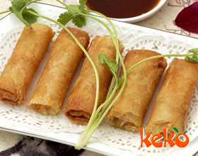 东江春卷:'1.将猪肉剁成肉泥,用盆盛载,加入虾仁、盐、味精拌匀,搅至起胶,再加入切成幼粒的鱿鱼、香菇,与淀粉再拌匀,便成春卷馅;2.将鸡蛋去壳,加淀粉打成...    详细介绍