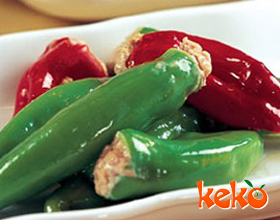 煎酿青红椒:'1.将虾仁去泥肠,加生粉洗净,拭干,切碎后加盐5克、味精5克,生粉2克搅拌至起胶,青椒、红椒切开去籽,切成5厘米*3厘米的块状;蒜头切茸;蒜切末。2...    详细介绍