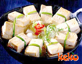 豆腐炒菠菜:'1.将豆腐切薄片;菠菜洗净切段,用沸水烫出。2.滑锅内加植物油烧热,放入豆腐两煎稍硬至浅黄色,取出豆腐;余油加葱丝烹锅,放入菠菜,加盐、味精煸炒...    详细介绍